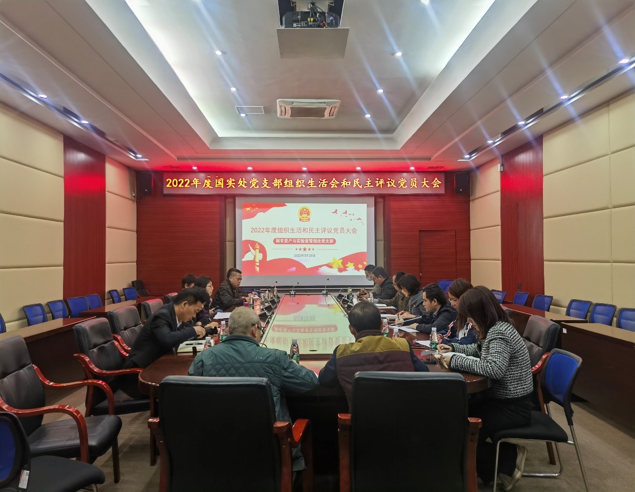 2023年3月29日下午,太阳集团2138网址,2138cc太阳集团官网入口在办公楼北楼三楼会议室召开2022年度组织生活会和民主评议党员大会,13名党员参加了会议。机关党委纪委书记郭昌明同志到会指导。