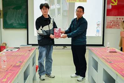 李畸勇副院长给找出安全隐患的同学发放纪念品